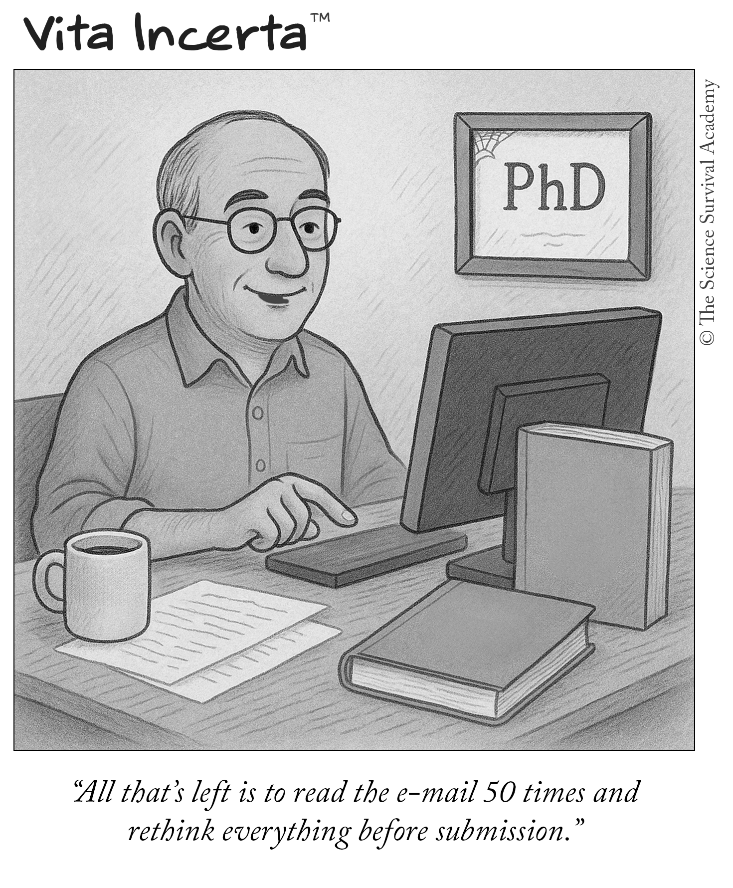 Equal parts dry humor and dark truth, Vita Incerta™ (Latin for Uncertain Life) exposes the daily grind of academia—awkward conferences, unread papers, and the existential weight of revise and resubmit. It’s not therapy, but it might help.